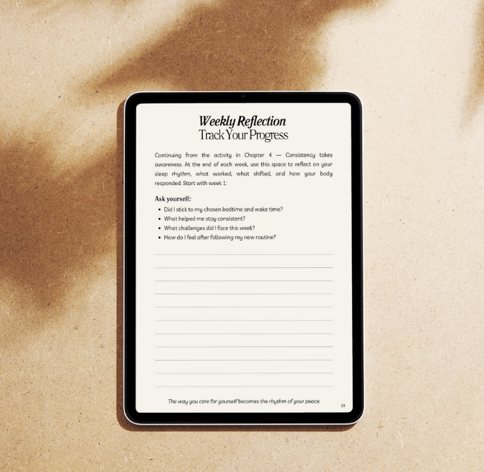 This is a 3-month guided journal with reflection prompts, trackers, and weekly check-ins designed to support your full sleep reset.